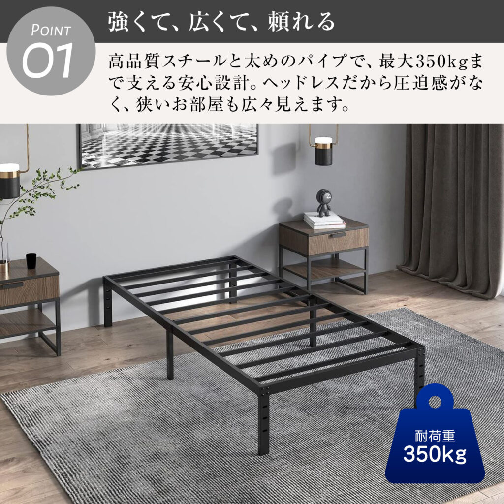 まずは、とてもシンプルなシングルベッドフレーム。